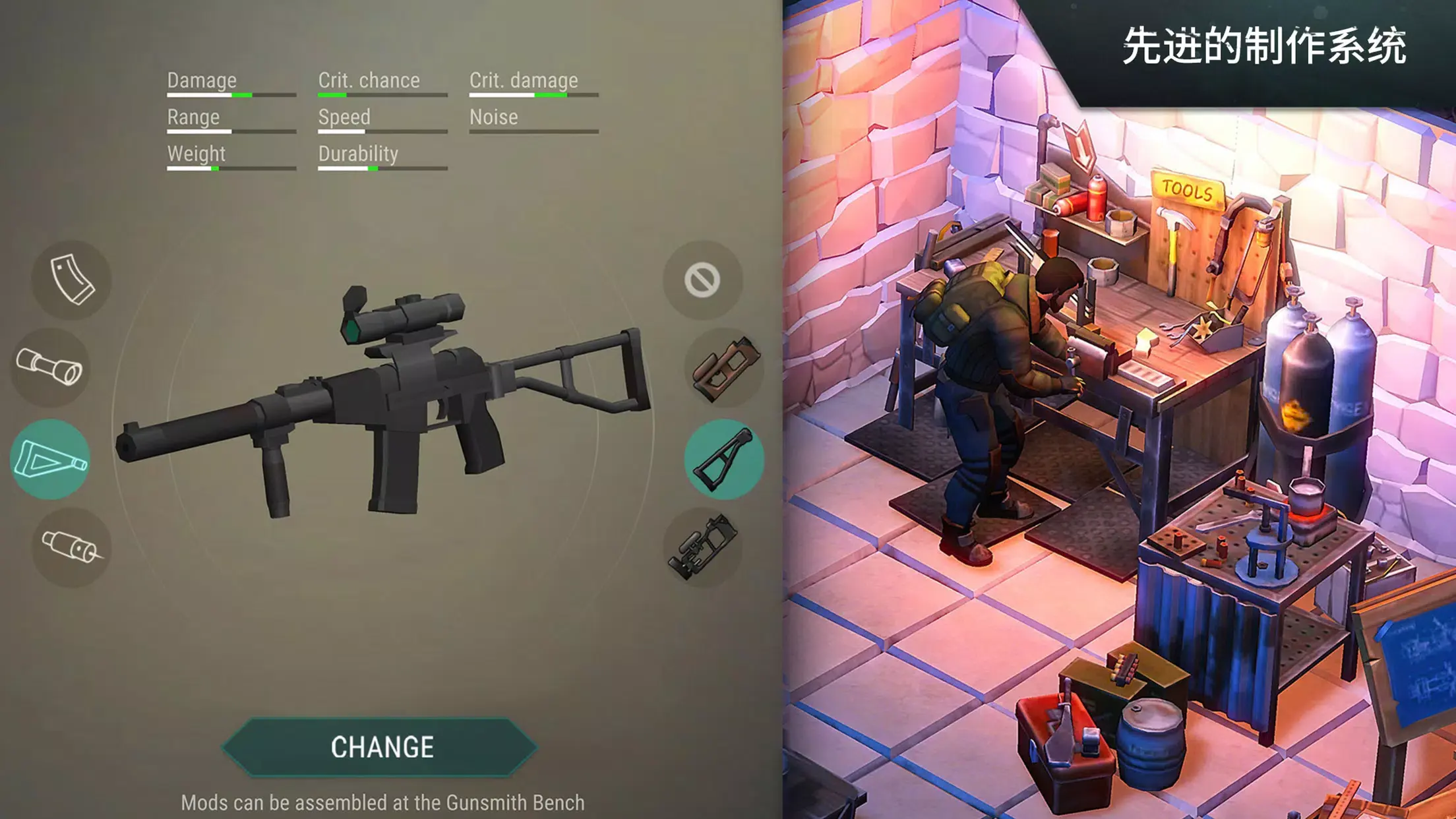 寻找废弃的军事基地和存活者营地,从而找到并获得最宝贵的资源和致命武器。远离僵尸的领土边界,射杀僵尸以获得资源。